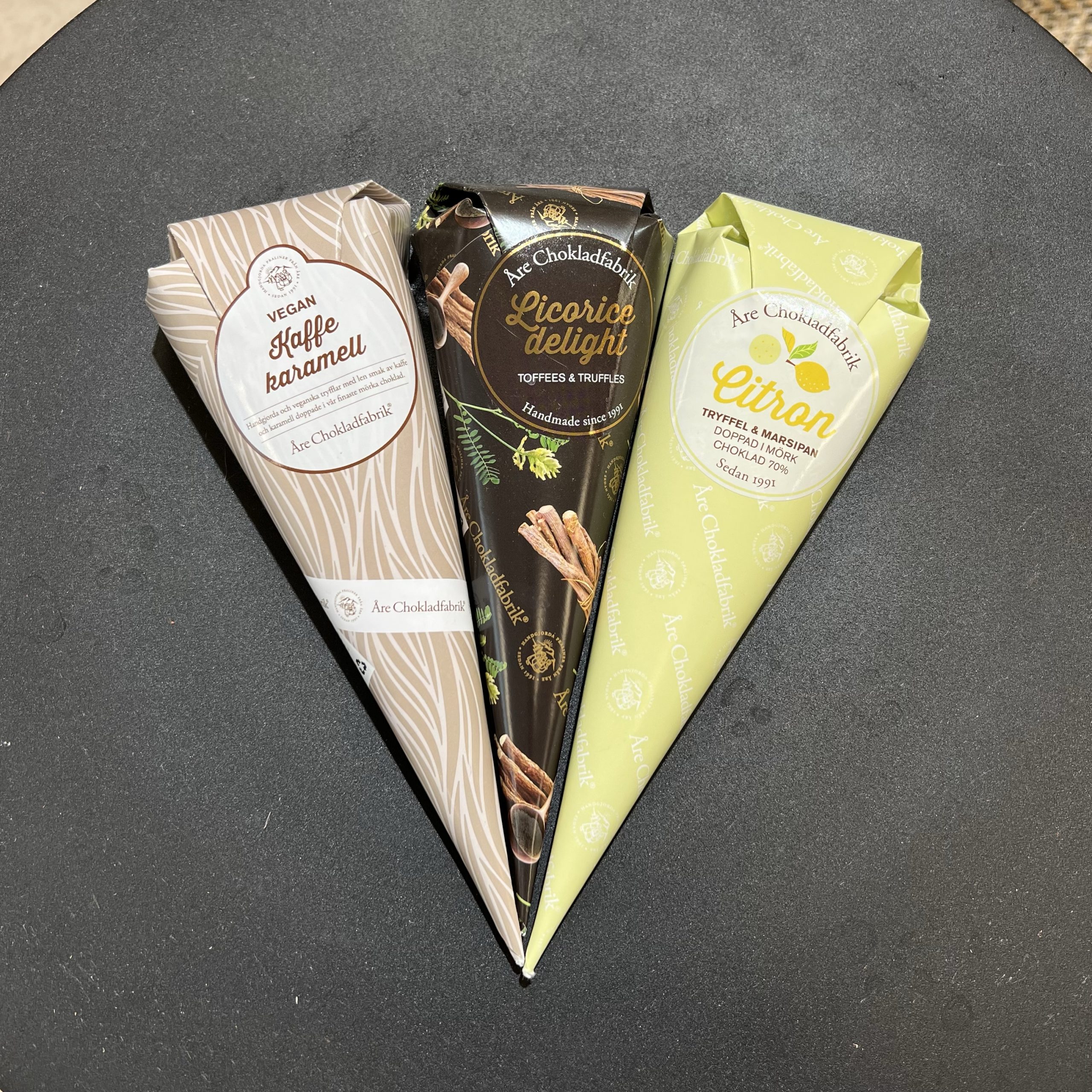 Åre chokladfabrik 100g Smaker varierar efter säsong, finns även veganska alternativ. Kan innehålla spår av gluten och nötter. Kan ersättas av likvärdigt alternativ beroende på tillgång hos lokal florist.