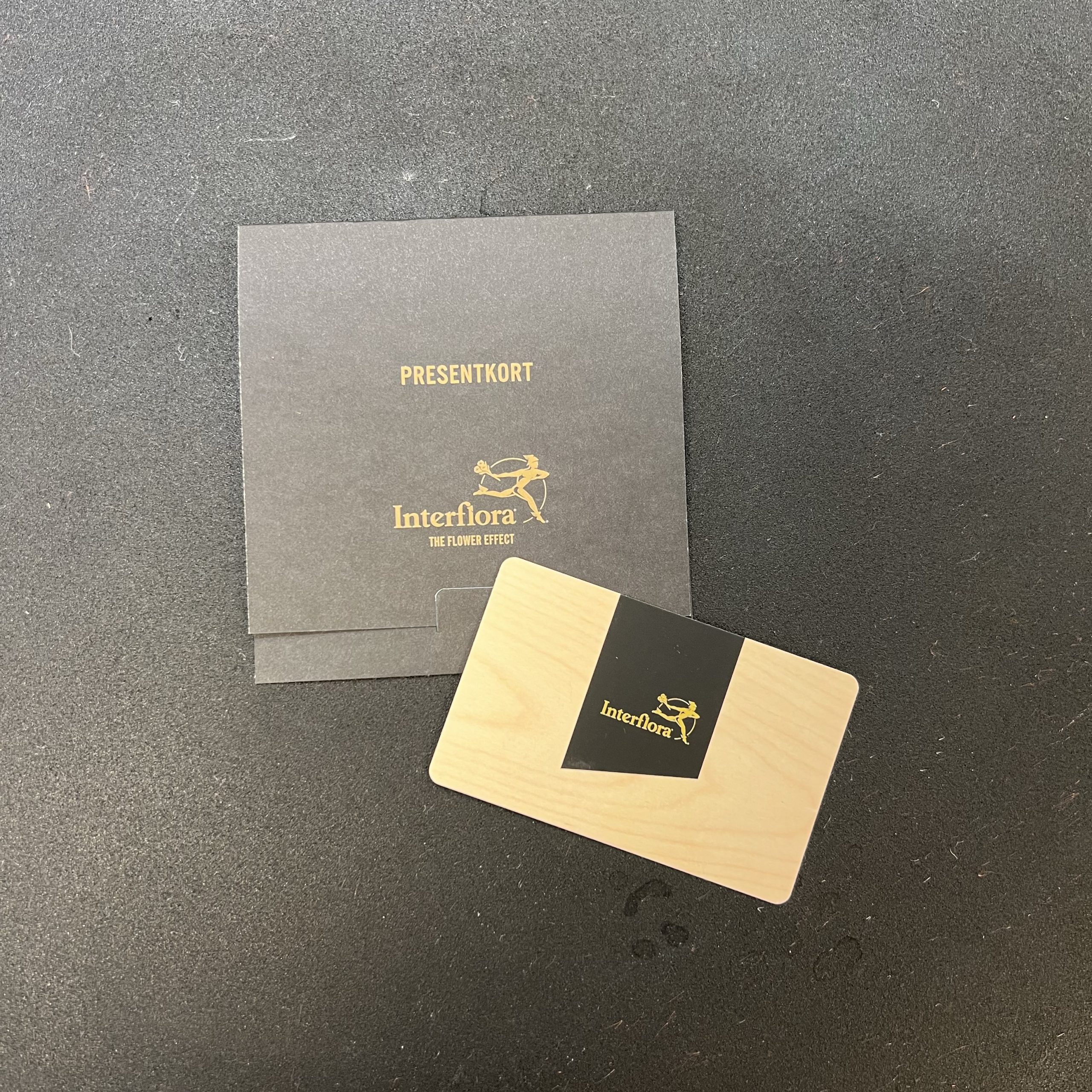 Gäller i alla Interfloraanslutna butiker i Sverige. Giltighetstid minst två år. Presentkortet laddas med valfritt belopp, från 50 kronor. Tänk på att välja rätt antal och värde per kort! Presentkort har en leveranstid på 3 arbetsdagar, om totalbeloppet inte överstiger 2000:-. Vid högre belopp är leveranstiden upp till 10 arbetsdagar.
